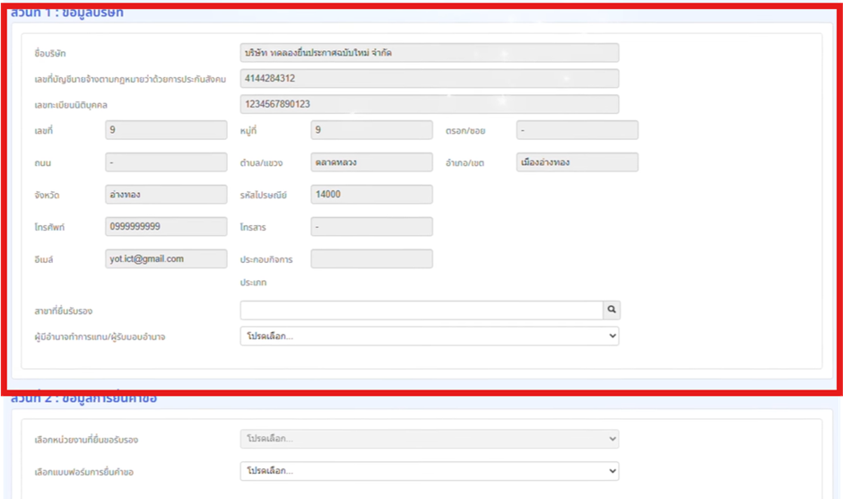 2. กรอกข้อมูลส่วนที่ 1: ข้อมูลบริษัท (ระบบดึงให้อัตโนมัติ)