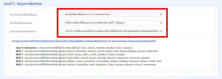 - การยื่นนี้สำหรับนายจ้างที่จัดฝึกอบรมให้ลูกจ้างผ่าน หลักสูตร e-Learning ที่กรมพัฒนาฝีมือแรงงานรับรองเท่านั้น
