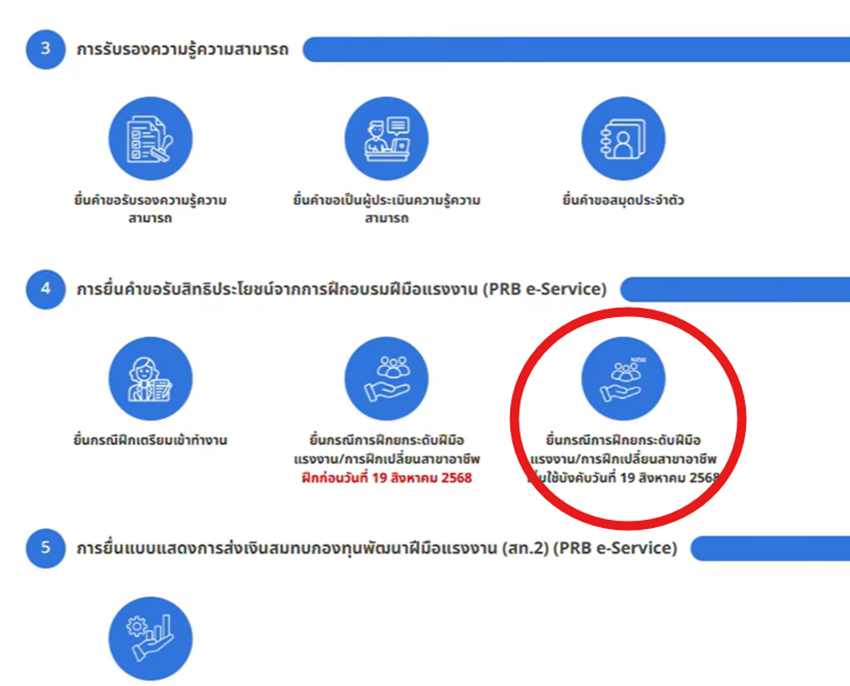 - เปลี่ยนสาขาอาชีพ: ฝึกอาชีพใหม่เพิ่มเติม (ไม่น้อยกว่า 18 ชม.)